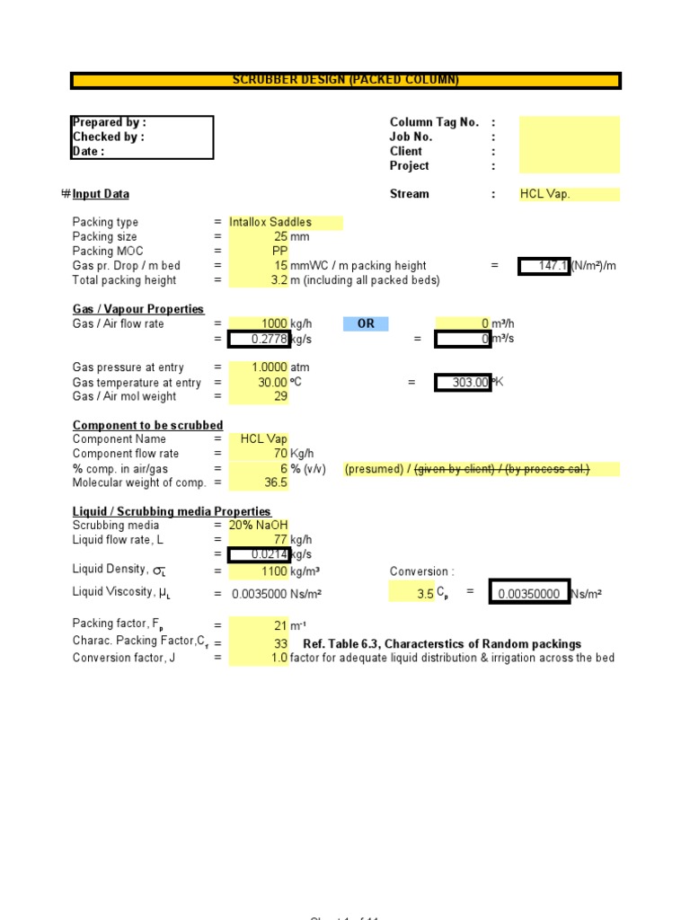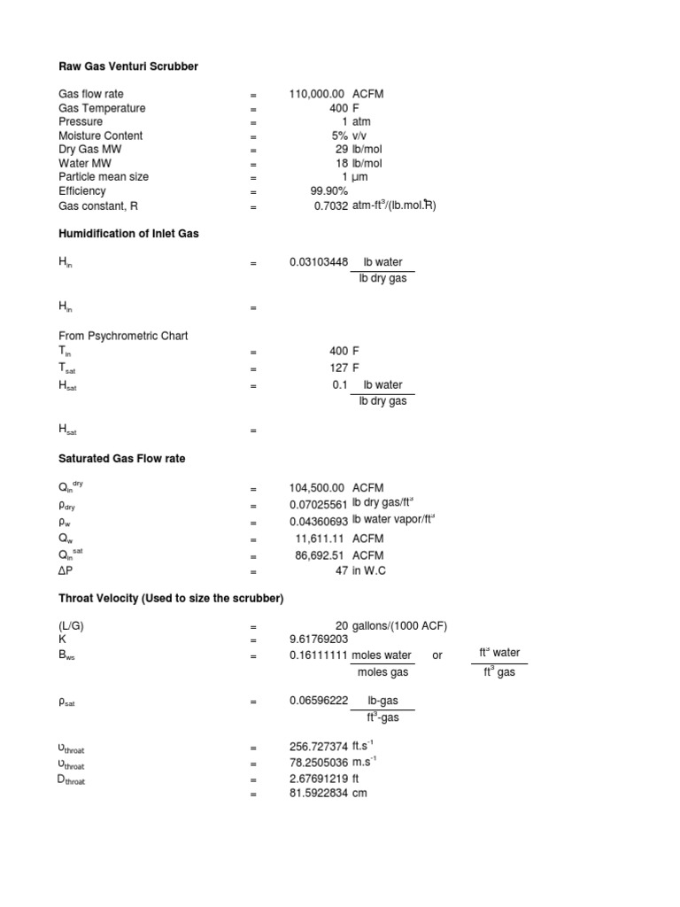 Scrubber design calculation. Average molecular weight of entering gases 400071 Kgkmol from Aspen Gas molar flow rate G in 0568400071 00142 kmols. The humidifying efficiency of the scrubber may be expressed as. In this study the performance and operating experiences of existing utility scrubber systems and the state-of-the- art in design of scrubber components are reviewed.
