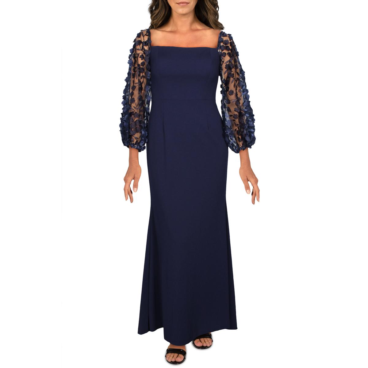 Quick add Added to cart. Buy Eliza J Womens Blue 3d-floral-sleeve Scuba Crepe Gown. The worlds destination for incredible fashion for incredible women. Sashed Sheath Dress In Red. Off the Shoulder 3D Floral Sleeve Scuba Crepe Evening Dress. Harlow Off the Shoulder Metallic Pleat Long Dress 26900 Quick add. Elegantly tailored and detailed sheer sleeves frame this off-the-shoulder gown crafted in crepe to fit and drape divinely from collarbone through classic train.